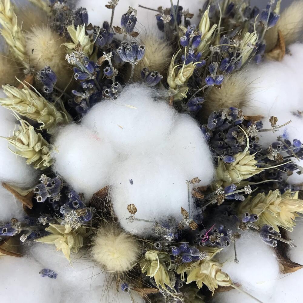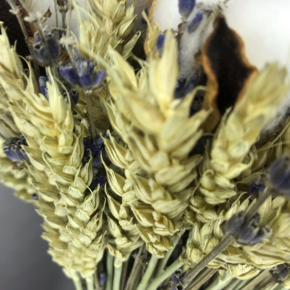 Пшеница (сухоцвет) – 100 шт.Лаванда (сухоцвет) – 41 шт.Хлопок натуральный – 6 шт.