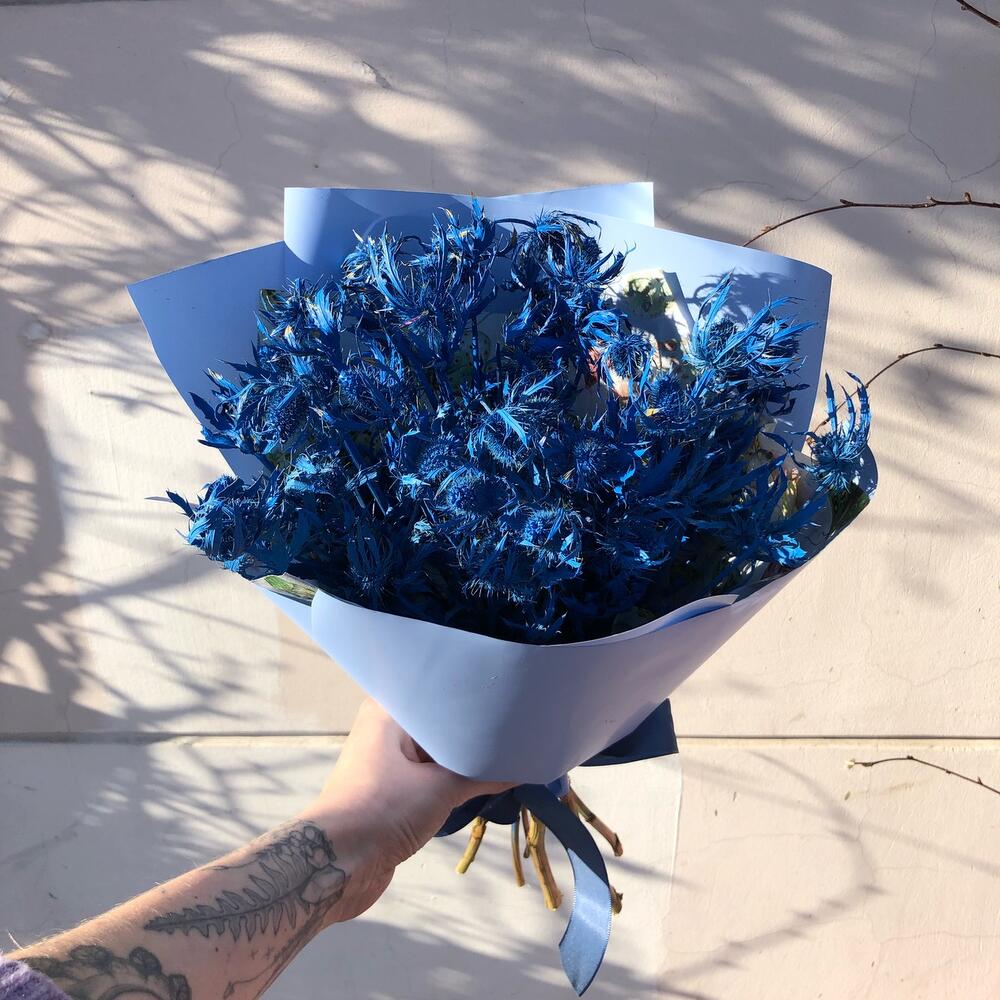 Упаковка – 2 шт.Лента атласная – 1 шт.эрингиум сухоцвет крашеный – 9 шт.