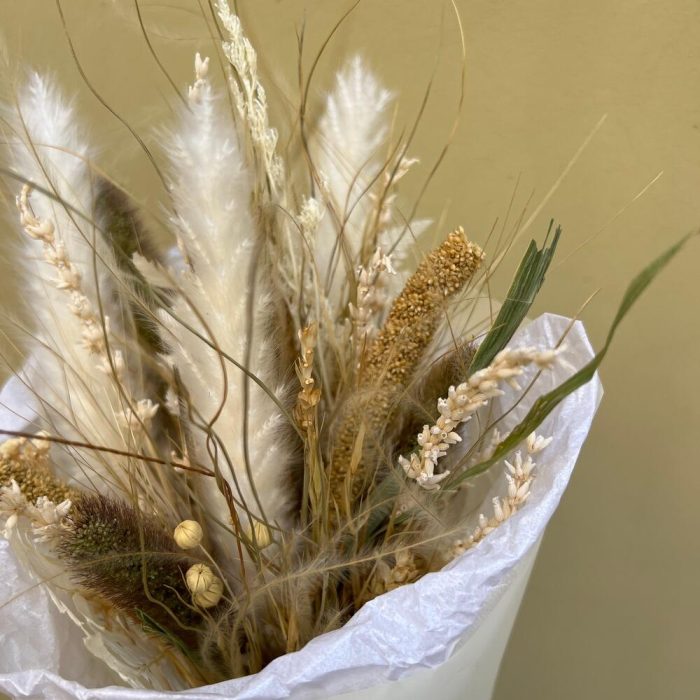 пушистики – 3 шт.Лаванда – 10 шт.Стифа – 5 шт.декор сухоцветы – 10 шт.Упаковка дизайнерская – 2 шт.