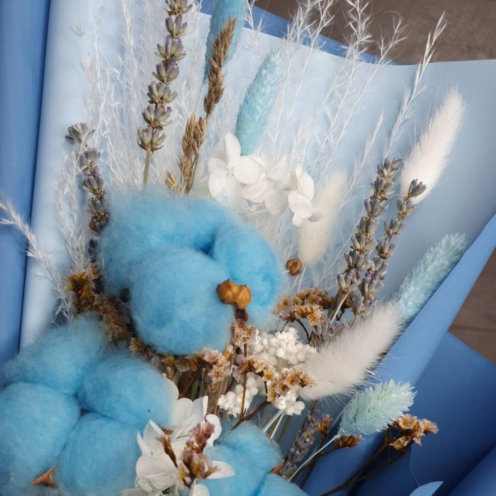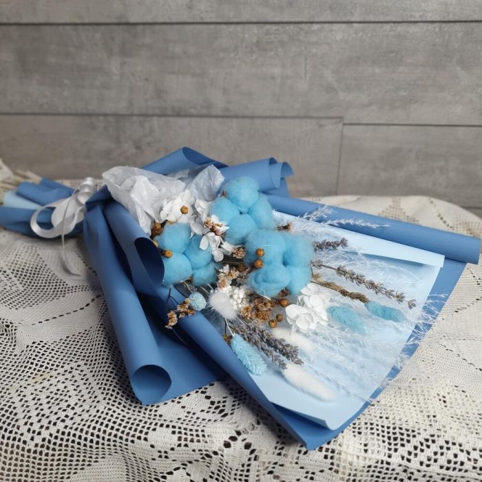 Хлопок – 3 шт.гортензия стабилизированная пучок – 1 шт.Лагурус – 3 шт.Фаларис – 4 шт.лавандин пучок – 1 шт.мискантус – 2 шт.статица стабилизированная – 1 шт.Лен – 3 шт.сорго – 1 шт.