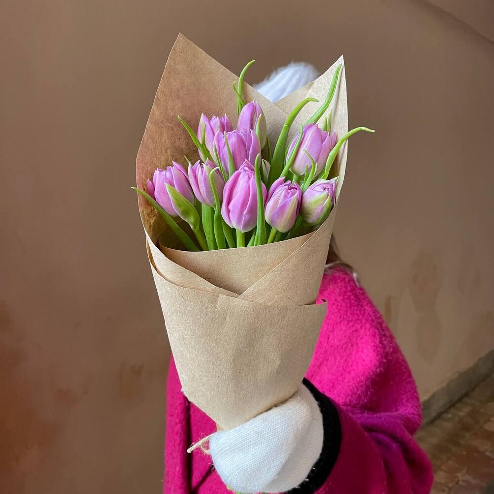 Крафтовая упаковка – 1 шт.сиреневый пионовидный тюльпан – 11 шт.