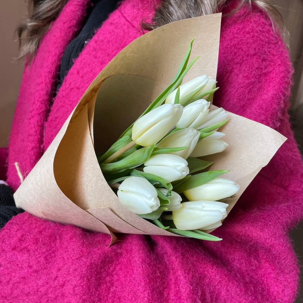 Крафтовая упаковка – 1 шт.Тюльпан белый – 13 шт.